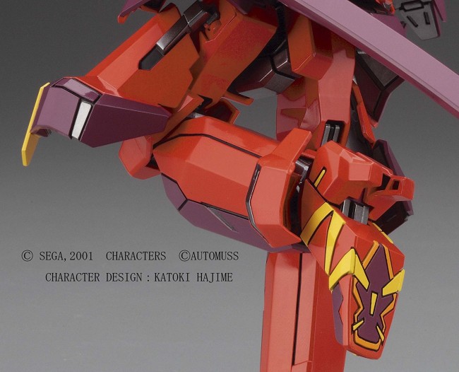 焔乃剣は鞘に納める事が可能。各部関節は可動式。マインドブースターの展開は、一部パーツの差し替えにより再現。