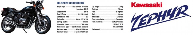 ●脱レプリカモデルとして、89年にカワサキから発売されたのがZEPHYRです。