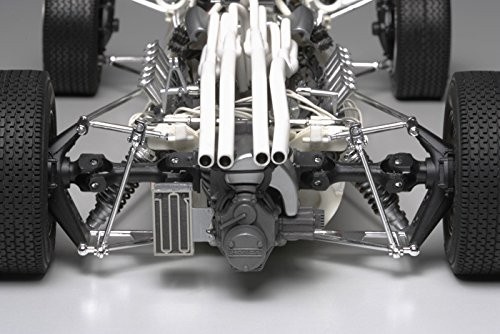 全長333mm、全幅143mm、全高70mmのプラスチックモデル組立てキットです。V型12気筒エンジンはフューエルパイプの配管、イグニッションコードの配線まで実車そのままの仕上がり。12本のエアファンネルはアルミ削り出し製パーツで再現しました。前後サスペンションにはコイルスプリングが組込まれ、スムーズに作動します。ステアリングホイールと連動して前輪が向きを変えます。ノーズカウルは脱着可能。完成後もラジエターなどの内部メカを見ることができます。ブレーキディスクやラジエター、オイルクーラー、ステアリングスポークはエッチングパーツ。エンブレムやミラー、メーターリングはインレットマーク。タイヤはリアルな質感を持つ中空ラバー製。トレッドパターンはもちろんサイドウォールのロゴ、サイズ表示まで克明に彫刻しました。ドライバーの人形1体つき。スライドマークは1966年のリッチー・ギンサー仕様2タイプ、1967年のジョン・サーティース仕様の合計3種類をセット。