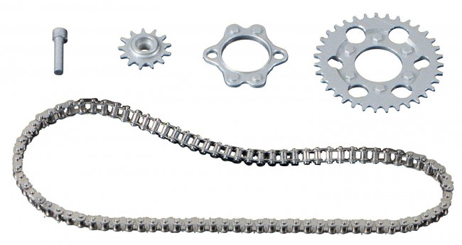 ステンレス削り出し製のローラーとエッチング製リンク、プラスチック製スプロケットで構成。