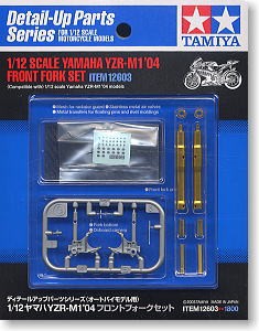 メカニカルなムードが魅力のレーサーモデル、ヤマハYZR-M1の仕上がりの質感をさらに高めるディテールアップパーツです。ゴールドアルマイト加工されたアルミ削り出し製のフロントフォークとリザーバータンク、フォークトップをはじめ、ステンレス削り出し製のホイール用エアーバルブ、さらにブレーキローターのフローティングピンやカウルの取り付け用リベットをインレットマークで用意。ラジエターガード用のブラックとイエローのネットもセットしました。