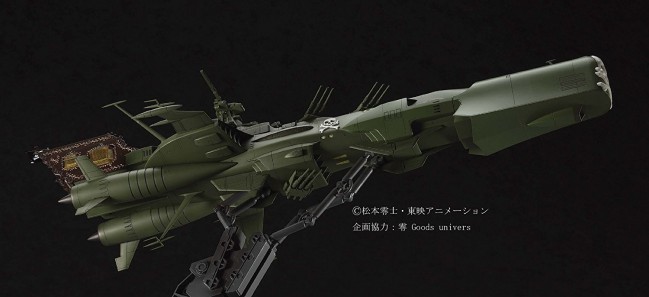 初登場作品である「劇場版 銀河鉄道999」のクライマックスでの活躍が印象深い、艦首にドクロを配した重厚な姿を再現。