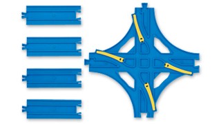 レールが交差するときに使用するプラレール。ポイント切替で、電車の方向も自由に変えられる。1/2直線レール4本付。