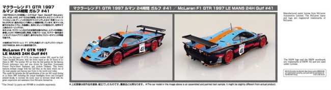 1997年のルマン24時間レースに「GulfTeam Davidoff McLaren」から参戦し、総合2位という輝かしい戦績を残した#41号車(シャーシNo.20R)です。マシンは、鮮やかなガルフブルーを基調に、各所にオレンジが配色され、世界中で人気のカラーリングです。デカールは「イタリア/カルトグラフ」製です。
