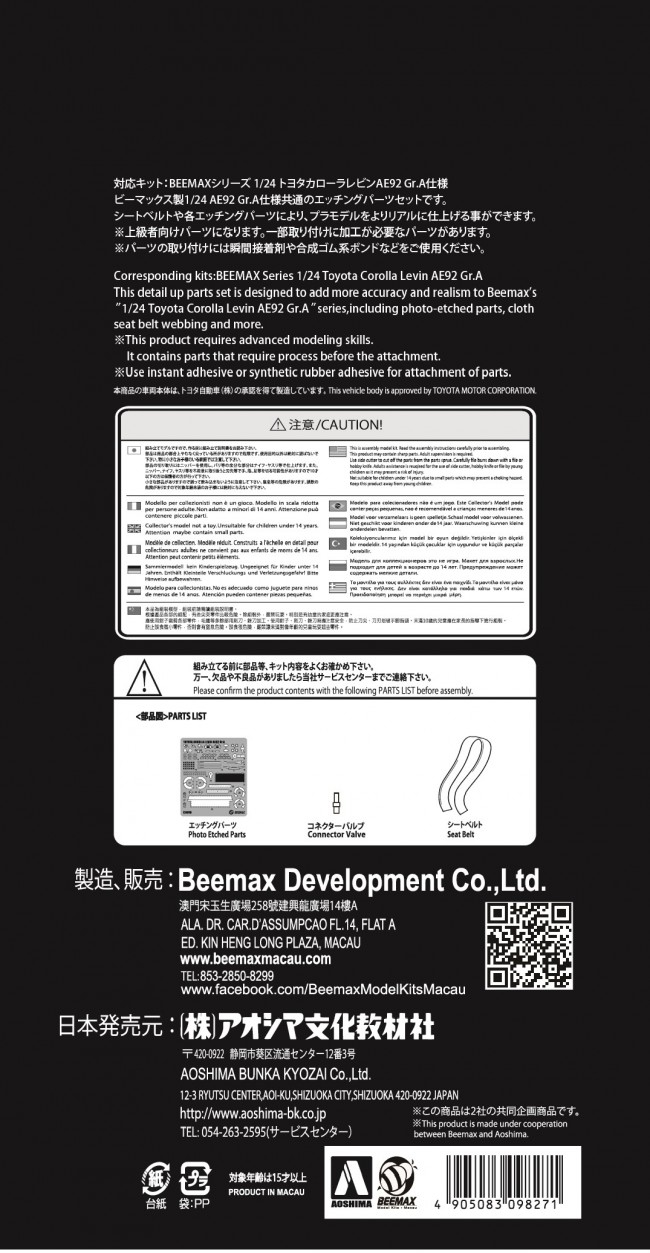 1/24 トヨタ カローラ レビン AE92 '88 Gr.A仕様用ディテールアップパーツ アオシマ