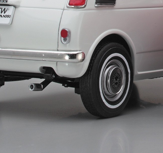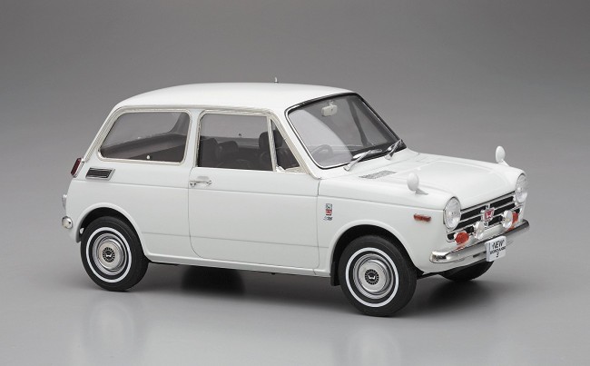 キットは完全新金型でN360IIを再現します。細部の仕様はスーパーデラックスとSの選択式。フェンダーミラー、マフラーカッター、ハンドル、メーターパネル、シフトレバーの形状の違いや、リアの泥除けの有無、フロントグリルのフォグランプの有無といった相違点を正確に作り分けられるパーツ構成となっています。