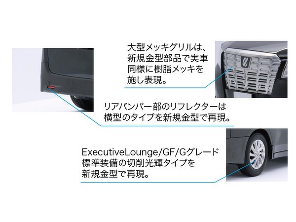・ExecutiveLounge/GF/Gグレード標準装備の切削光輝タイプを新規金型で再現。