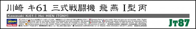 ●デカールは飛行第244戦隊 戦隊長 小林照彦大尉野乗機「295」(調布飛行場1945年1月)、飛行第56戦隊所属機「294」(済州島1944年)、飛行第18戦隊所属機「41」(調布飛行場1944年夏)の3種類。