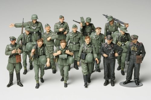 行軍シーンなど幅広い情景設定が楽しめる、ドイツ軍兵士のプラスチックモデル組み立てキットです。野戦帽や無帽姿で行軍する機関銃チーム7体と、立ちポーズの歩兵2体、リラックスした雰囲気の戦車兵3体をセット。精悍なスタイルの将校2体と野戦憲兵も付属します。歩兵の服装はM43型野戦服を中心にモデル化。折りたたんだ三脚架など装備品も別パーツでシャープな仕上がりです。キットを複数そろえて大規模な行軍シーンを再現するのも楽しいでしょう。