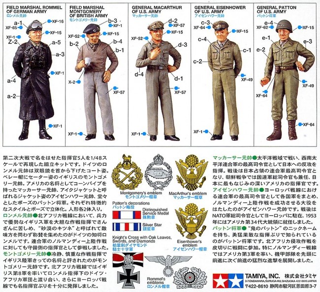 第二次大戦で名をはせた指揮官5人を1/48スケールで再現したプラスチックモデル組み立てキットです。