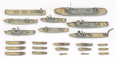 大型艦の入港を手伝う曳船、訓練や救命用のカッター、そして物資輸送用の運搬船の合計14種類23隻が勢揃い。