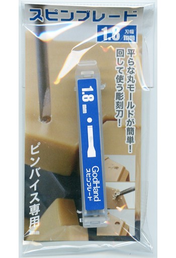 ナイフ・カッターなどです。 。 平らな丸モールドが簡単! 回して使う彫刻刀! スピンブレードは、ピンバイスに取り付けて使用する彫刻刀です。 ※刃物なので、蓋を開けるときや、ご使用する際は注意してお取り扱いください。 ・スピンブレードのおすすめの使い方をする場合には、グリップ付きのピンバイスや、同径のドリル刃がいります。 ・細かいタイプのディティールアップパーツがあるので、ドリル刃だと綺麗に入らないが、スピンブレードで作業を行えば綺麗な仕上がりになります。 彫刻刀としても、普通に使用することができます。 <使用時の注意> ※使い方を誤ると刃が欠けます。 回して使用する場合、下穴が必須です。 回転時は刃を押し付けず、自重のみで回して下さい。 ※素材の特性上、錆びが発生しますので、錆油をお塗りください。 (ゴッドハンド ウェブサイトより)