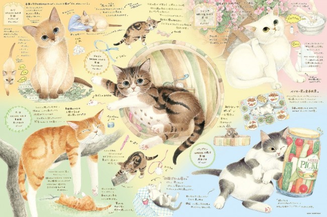 自由気ままに猫たちが暮らす「猫町ナーゴ」の心温まる可愛らしいイラスト!完成サイズ:50x75cm