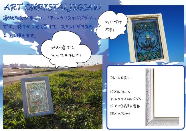 ピースが透明で美しい「アートクリスタルジグソー」に、表面にはすりガラスのようなテクスチャ「フロスト加工」を施したフロストアートジグソーです。