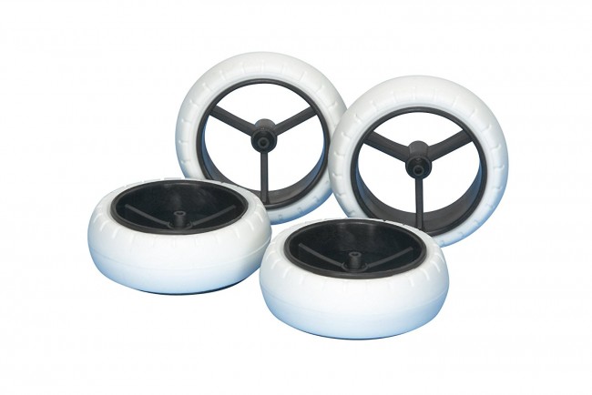 ★シャープな3本スポークデザインの大径ナローホイールをカーボン繊維配合ナイロン樹脂製とした強化タイプ。 ★路面との接地面積が小さいバレルタイヤを組み合わせました。