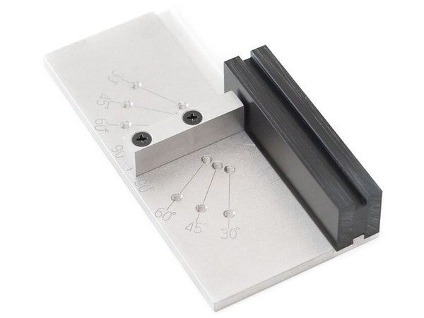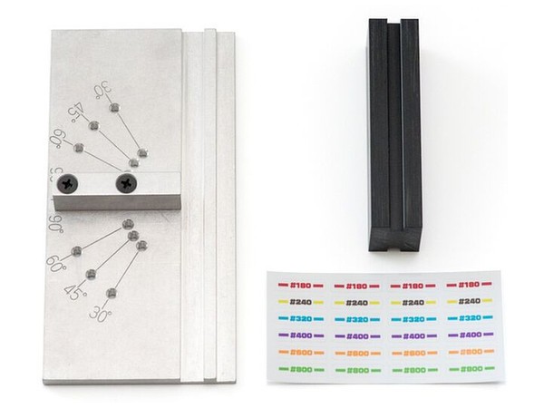 対象物を送り出すガイドのコマは、30°・45°・60°・90°の任意の角度に固定可能で、コマに押し当てて、指で少しずつ対象物を送り出して研磨することで、任意の角度に加工することができます。