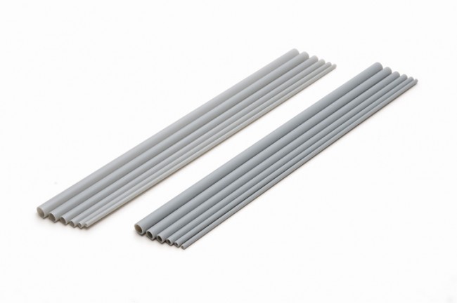 ●模型工作や改造、ディテールアップや自作パーツの製作に使えるプラスチック製パイプ/棒材でです。