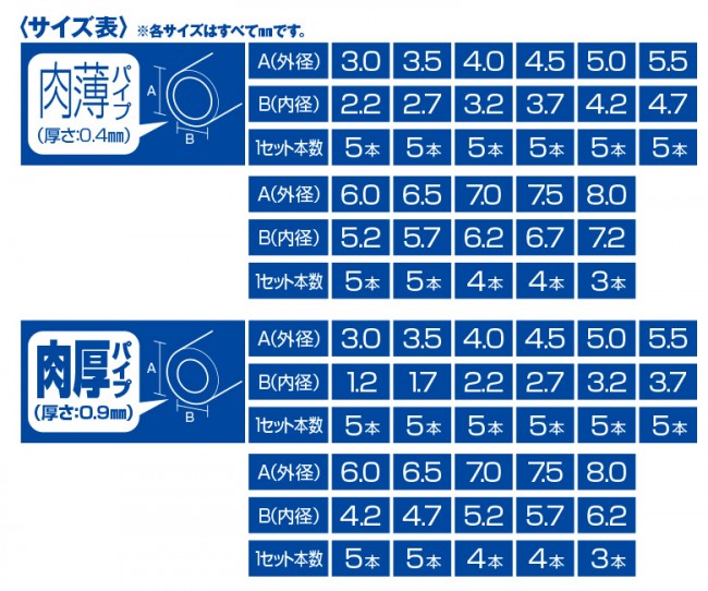 プラ=パイプ (肉薄) 外径3.0-8.0mm