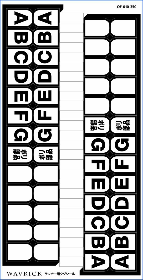 ご注意 本製品には使用頻度が高いとおもわれる“A?G、ポリ部品”の表示があ らかじめ印刷してあります。これら以外のランナー記号が必要な場合は、無地のタグ シールにペン等で書き込んでご使用ください。
