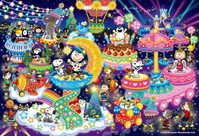 スヌーピーとチャーリー・ブラウンたちがナイトパレードに出発!キラキラのイルミネーションがとっても綺麗♪【完成サイズ】26×38cm【パネル】No.3