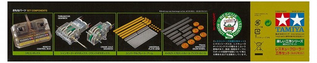 ガレキが散らばった災害現場などの悪路をものともせずに走破するレスキューロボットをイメージした工作セットです。
