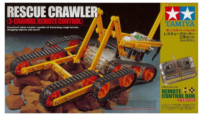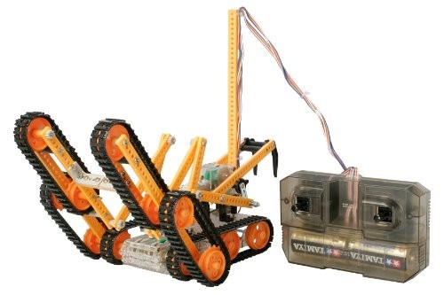 片側3連の6つのクローラー(キャタピラ)を装備した3chリモコンロボットの組み立てキットです。