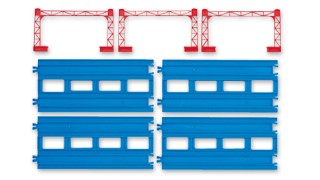 「R-05 複線曲線レール」と組み合わせて、複線レイアウトが作成できるプラレール。ウラ表使用可能。4本入。