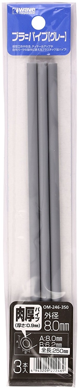 マテリアル・シリーズ プラ=パイプ 【グレー】肉厚 外径8.0mm 3本入り OM246 ウェーブ