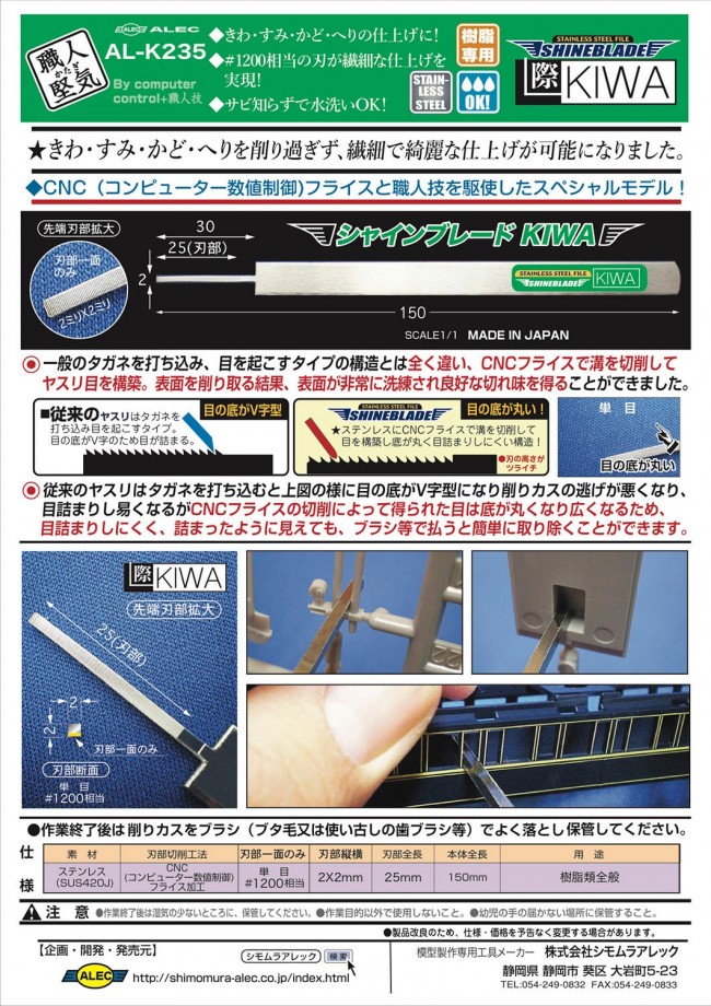 職人堅気 樹脂専用 ステンレス製ヤスリ シャインブレード KIWA アレック