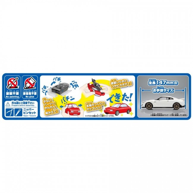 R35型GT-Rのカスタムホイール仕様! <金型追加> R35型2024年式日産GT-Rは、ツインターボV6と洗練された全輪駆動システムにより“最終形のGT-R”と称される高性能スポーツカーです。 その魅力を小さいながら精密に再現したプラモデルにカスタムホイール仕様が登場します。 キットはノーマル車高にも組み立て可能です。 ・パーツ点数28点のお手軽モデル ・塗り分けの必要な部分はシールで再現 ・ノーマル車高にも組み立て可能 ・ボディカラー:No.03CU-BW ブリリアントホワイトパール ・ホイールカラー:ブロンズ ■塗装不要 ボディ色をプラスチック材料の着色で再現する事により、塗装不要となりました。 ツヤツヤのボディも見どころです。 ■接着剤不要 はめ込み式を採用する事で接着剤が不要となりました。 ■少ないパーツで高い再現性 キットを簡略化しながらも1/32スケールで高い再現性を実現しました。 ※画像は試作品です。実際の商品とは異なる場合がございます。 ※この商品はプラモデルキットです。組み立てには別途、工具等が必要です。 ※ローダウン仕様で組み立てた場合、タイヤが回転しにくい場合があります。 ※車種によりホイールカラーが異なりますのでご注意ください。 ※日産自動車(株)申請中 [プラモデル] ブランド AOSHIMA シリーズ 楽プラ スナップキット No.03CU-BW スケール (青島文化教材 ウェブサイトより)