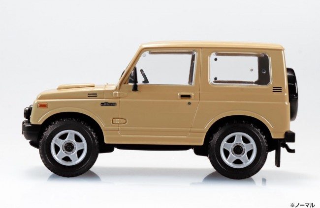 JA11ジムニーにカスタムホイール仕様が登場!  スズキ JA11 ジムニーは、軽自動車ながら本格的なラダーフレームと4WDで高い走破性を持つ小型オフロード車。 コンパクトな車体と力強いターボエンジン、扱いやすさから根強い人気を誇るこのモデルをプラモデルで再現しました。  <金型追加> ・パーツ点数26点のお手軽モデル ・塗り分けの必要な部分はシールで再現 ・ノーマル車高にも組み立て可能 ・ボディカラー:No.18CU-KI カーキ ・ホイールカラー:シルバー  ■塗装不要 ボディ色をプラスチック材料の着色で再現する事により、塗装不要となりました。 ツヤツヤのボディも見どころです。  ■接着剤不要 はめ込み式を採用する事で接着剤が不要となりました。  ■少ないパーツで高い再現性 キットを簡略化しながらも1/32スケールで高い再現性を実現しました。  ※画像は試作品です。実際の商品とは異なる場合がございます。 ※この商品はプラモデルキットです。組み立てには別途、工具等が必要です。 ※車種によりホイールカラーが異なりますのでご注意ください。 ※スズキ(株)監修中  [プラモデル] ブランド AOSHIMA  シリーズ 楽プラ スナップキット No.18CU-KI  スケール 1/32  (青島文化教材 ウェブサイトより)