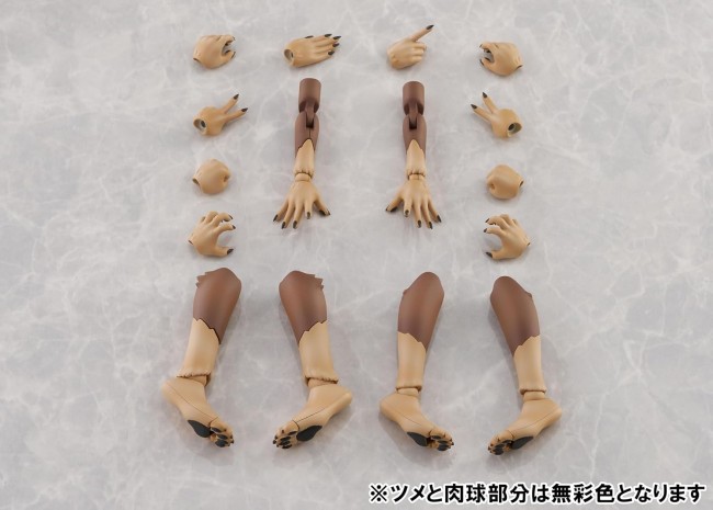 よりこだわったケモノスタイルを。 好みの姿に調整できるオプションパーツ! アーム&レッグパーツセットは、新造形の中ケモアーム、中ケモ用レッグ、高ケモ用レッグがセットになっており、ベースキットの腕部と脚部をお好みで交換することで、従来とは違った雰囲気のケモノが再現可能です。 新アームはベースキットに付属する中ケモアームより毛並み表現が増え、サイズも少し大きめになっています。 新レッグパーツは関節の数や足先の造形など、ベースキットに付属する中ケモレッグ・高ケモレッグよりヒト寄りになっています。 ・新造形のケモアーム&ケモハンドパーツ付属 ・ハンドパーツ7種(計12個)付属 ・新造形の中ケモ用膝下レッグパーツ付属 ・新造形の高ケモ用膝下レッグパーツ付属 【商品仕様】 素材:ABS/PVC ※ツメと肉球部分は無彩色となります。 ※本パーツセットを使用する場合は、KP品番の「ニホンオオカミ」が別途必要になります。 [プラモデル] ブランド AOSHIMA シリーズ けもプラ No.KO-02RJW スケール Non (C) AOSHIMA BUNKA KYOZAI Co., Ltd. (青島文化教材 ウェブサイトより)