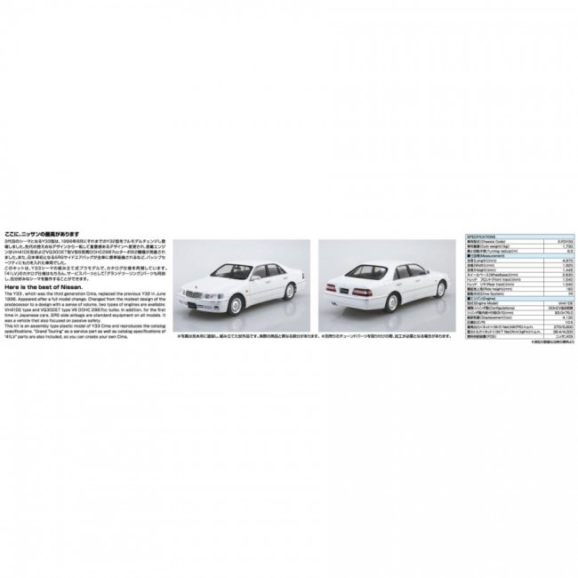 プラスチック製 / カーモデル組み立てキット めちゃいけてるシーマです ・3代目、モデルチェンジ直後の前期型を再現 ・窓枠マスキングシール付属 ・グランドツーリング部品付属 [プラモデル] ブランド AOSHIMA シリーズ ザ・モデルカー No.137 スケール 1/24 (青島文化教材 ウェブサイトより)