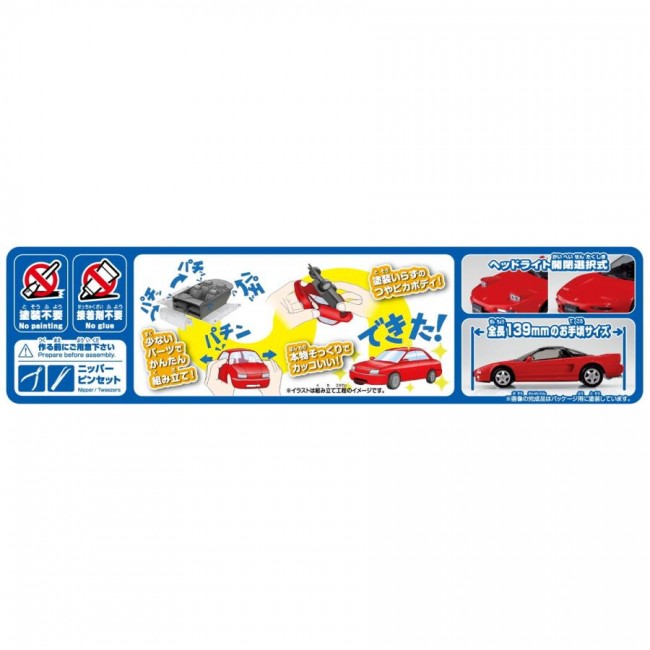 プラモデル 【スケール】1/32 ホンダが誇る国産スーパーカー 【製品説明】 憧れの国産スーパーカーを手軽にあなたのお手元に 〈完全新金型〉 ・パーツ点数32点のお手軽モデル 【楽プラ スナップキットとは】 ・塗装不要 ボディ色をプラスチック材料の着色で再現する事により、塗装不要となりました。 ツヤツヤのボディも見どころです。 ・接着剤不要 はめ込み式を採用する事で接着剤が不要となりました。 ・少ないパーツで高い再現性 キットを簡略化しながらも1/32スケールで高い再現性を実現しました。 ボディカラー:No.19-FR フォーミュラレッド