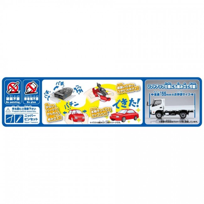 ──ヒノの2トン 楽プラの「はたらく車」初の2トン車、日野デュトロ 低床 平トラックが登場します。 ボディ形状は勿論のこと、ボディ下部フレームの装備もリアルに再現しました。 パーツ数を抑え、塗装不要・接着剤不要。お子様から大人まで楽しめるプラモデルです。 ・パーツ点数35点のお手軽モデル ・塗り分けの必要な部分はシールで再現 【楽プラ スナップキットとは】 ・塗装不要:ボディ色をプラスチック材料の着色で再現する事により、塗装不要となりました。ツヤツヤのボディも見どころです。 ・接着剤不要:はめ込み式を採用する事で接着剤が不要となりました。 ・お手頃価格:キットの簡略化と1/32スケールとする事でお手頃価格を実現しました。 スケール:1/32 ボディカラー:No.23-WE ホワイト ※画像は3D設計図に着色したものです。実際の商品とは異なる場合がございます。