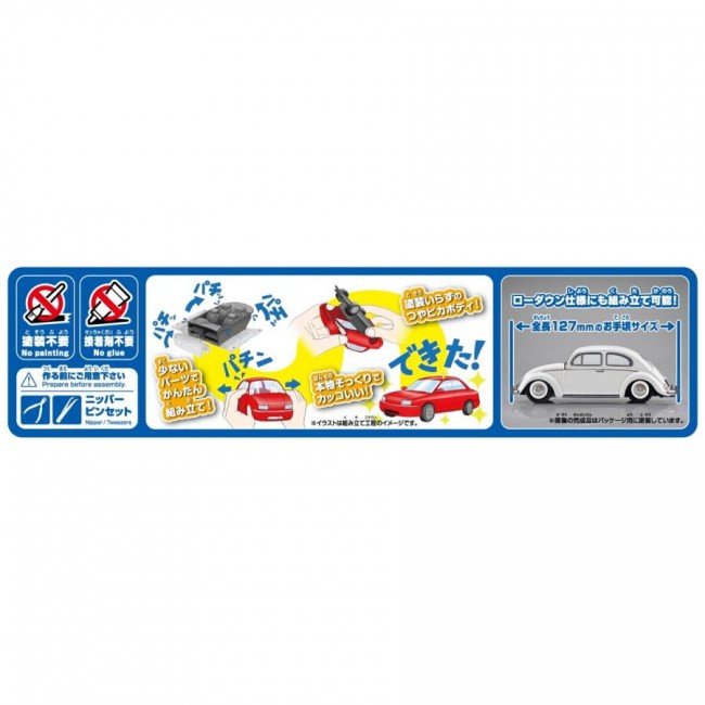 プラモデル 【スケール】1/32  【製品説明】 ・1938年に生産が開始されたフォルクスワーゲンの「ビートル」 ・通称「オーバル」と呼ばれるモデルを再現 ・パーツ点数32点のお手軽モデル  【楽プラ スナップキットとは】 ・塗装不要 ボディ色をプラスチック材料の着色で再現する事により、塗装不要となりました。 ツヤツヤのボディも見どころです。 ・接着剤不要 はめ込み式を採用する事で接着剤が不要となりました。 ・少ないパーツで高い再現性 キットを簡略化しながらも1/32スケールで高い再現性を実現しました。  ボディカラー:No.20-PW パールホワイト