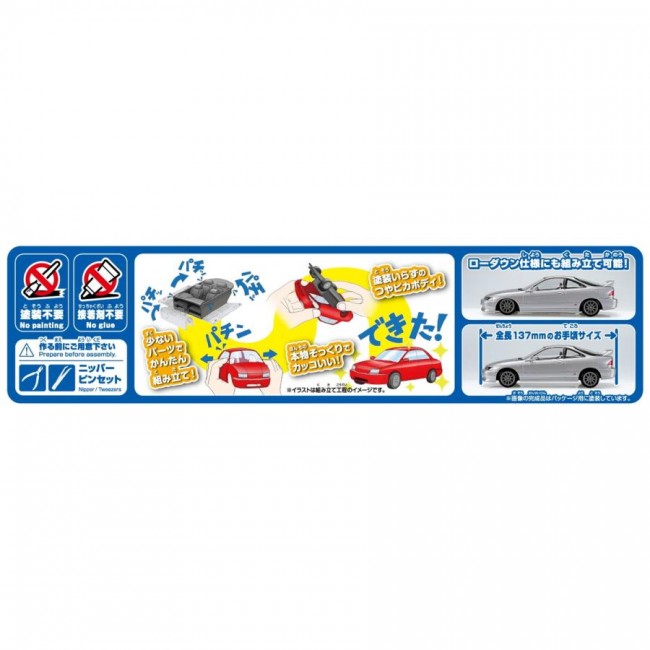 プラモデル 【スケール】1/32 次のRへ。98 Spec登場。 〈完全新金型〉 ホンダ インテグラにVTECを搭載したホットモデル「インテグラ タイプR」クーペモデルDC2を1998年の後期型、通称98Specでキット化しました。パーツ数を抑え、塗装不要・接着剤不要。お子様から大人まで楽しめるプラモデルです。 【商品特徴】 ・パーツ点数28点のお手軽モデル ・16インチホイール ・ローダウン仕様でも組み立て可能 ・塗り分けの必要な部分はシールで再現 【楽プラ スナップキットとは】 ・塗装不要 ボディ色をプラスチック材料の着色で再現する事により、塗装不要となりました。 ツヤツヤのボディも見どころです。 ・接着剤不要 はめ込み式を採用する事で接着剤が不要となりました。 ・少ないパーツで高い再現性 キットを簡略化しながらも1/32スケールで高い再現性を実現しました。 ※この商品はプラモデルキットです。組み立てには別途、工具等が必要です。