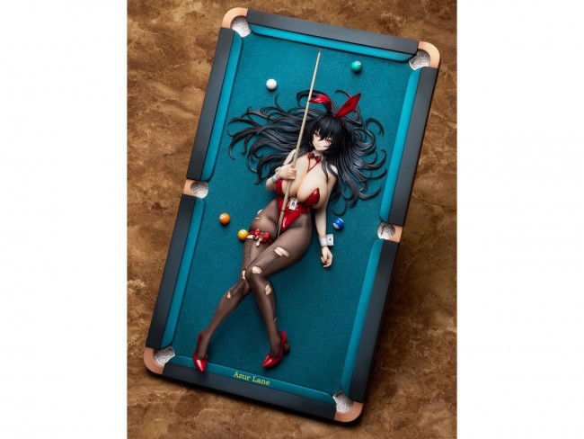 Yostarが贈る大人気アプリゲーム『アズールレーン』より、「大鳳」が着せ替え衣装「羅紗遊情」の姿でフィギュア化! バニーガール衣装に身を包み、ビリヤード台に寝そべる大胆なポーズで立体化しました。 ほんのり赤みを帯びた表情や、しなやかに広がる髪の造形が、その魅力を一層引き立てます。 レザー衣装は艶感を強調した塗装仕上げとし、破れたストッキングから覗く素肌がさりげない色気を演出。 ビリヤード台には実物素材を使用し、角度調整可能な支柱付き台座により、リアルな雰囲気と自由度の高い展示をお楽しみいただけます。 さらに、差し替え用の表情パーツや脚部パーツが付属し、お好みのシチュエーションでの展示をお楽しみいただけます。 挑発的で魅力あふれる大鳳の姿を、ぜひコレクションにお迎えください。 【アズールレーン 大鳳 羅紗遊情Ver.】 作品名 『アズールレーン』 仕様 PVC&ABS製塗装済み完成品 1/7スケールフィギュア サイズ フィギュア本体全長:約27cm 台座:約34x20cm 初回分にのみ付属の特典(特典は出荷順の都合により、早期のご注文でも付属しない場合がございます。) 等身大タペストリー(70x160cm)(別梱包予定) (C) 2017 Manjuu Co.,Ltd. & YongShi Co.,Ltd. All Rights Reserved. (C) 2017 Yostar, Inc. All Rights Reserved.