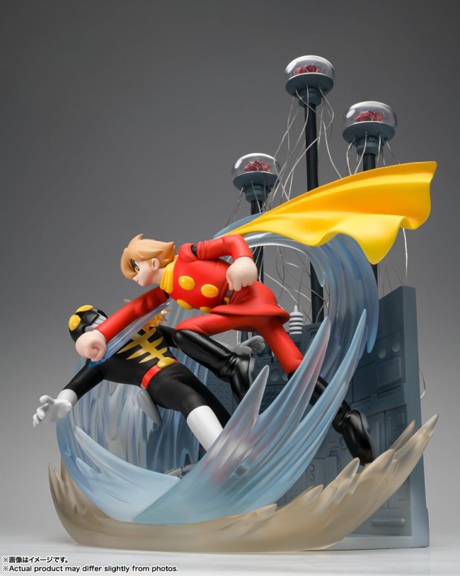 SF/アニメキャラクター(完成品・固定ポーズ) フィギュアーツZERO 『サイボーグ009 -地下帝国"ヨミ"編-』より<最終決戦> 漫画家・石ノ森 章太郎の代表作であるSF漫画『サイボーグ009』より、屈指の人気エピソードである「地下帝国“ヨミ”編」の最終決戦シーンをフィギュアーツZEROで立体化! 石ノ森章太郎の名作コミックスから『サイボーグ009』『仮面ライダー』などのタイトルをフィギュアーツZEROで立体化。 第1弾は『サイボーグ009』! 敵組織「黒い幽霊団(ブラック・ゴースト)」との直接対決を描いた「地下帝国“ヨミ”編」より、宿敵『スカール』との最終決戦シーンを、石ノ森キャラ造形を得意とする斎藤毅氏が手掛けた原型で躍動感あふれるジオラマスタチューとなった。 石ノ森章太郎の『サイボーグ009』より、「黒い幽霊団」との決戦を描いた屈指の人気エピソード「地下帝国“ヨミ”編」から、主人公・009/島村ジョーと宿敵スカールの最終決戦シーンを躍動感あふれる造形で初立体化! 原型は石ノ森キャラの造形を得意とする「少年ゼペット」斎藤毅氏の制作により、漫画からそのまま飛び出してきたような造形・ディテールで、石森プロ監修のもと、サイボーグ009ファンにはたまらない造形となっている。 背景にそびえたつ3本の柱上の3つの脳は「黒い幽霊団」の本体だ。 脳はクリアパーツのドームで覆われ、柱にはドームから伸びるワイヤーコードが巻き付いている。 こだわりにこだわった背景にも注目だ。 超高速移動能力『加速装置』を持つサイボーグ同士の対決! そのスピード感をクリアパーツのエフェクトで再現。 エフェクトパーツを巧みに使って009とスカールを宙に浮いているように配置し、超高速対決を演出! 『サイボーグ009』の「地下帝国“ヨミ”編」連載は週刊少年マガジンで1966年7月からスタートした。 その連載開始からちょうど60周年となる2026年7月に発売予定! 商品スペック 全高 約170mm(009フィギュア単体) 約330mm(スタチュー全体) 材質 PVC、ABS製 セット内容 ・本体 ・脳髄ドームタワー① ・脳髄ドームタワー② ・脳髄ドームタワー③ 登場作品名 サイボーグ009 (C)石森プロ 画像はイメージです。 商品の画像・イラストは実際の商品と一部異なる場合がございますのでご了承ください。 発売から時間の経過している商品は生産・販売が終了している場合がございますのでご了承ください。 商品名・発売日・価格などこのホームページの情報は変更になる場合がございますのでご了承ください。 (バンダイ ウェブサイトより)
