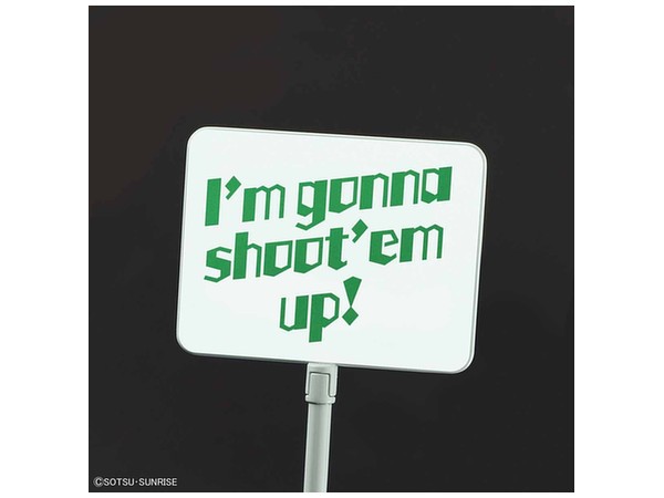 付属するプラカードにはそれぞれのキャラクターの名セリフを表記したシールが付属!