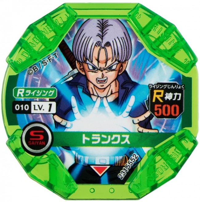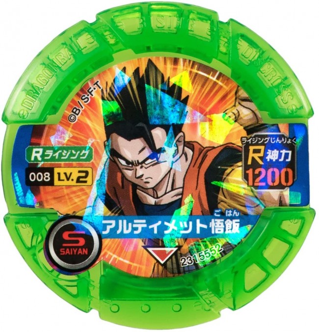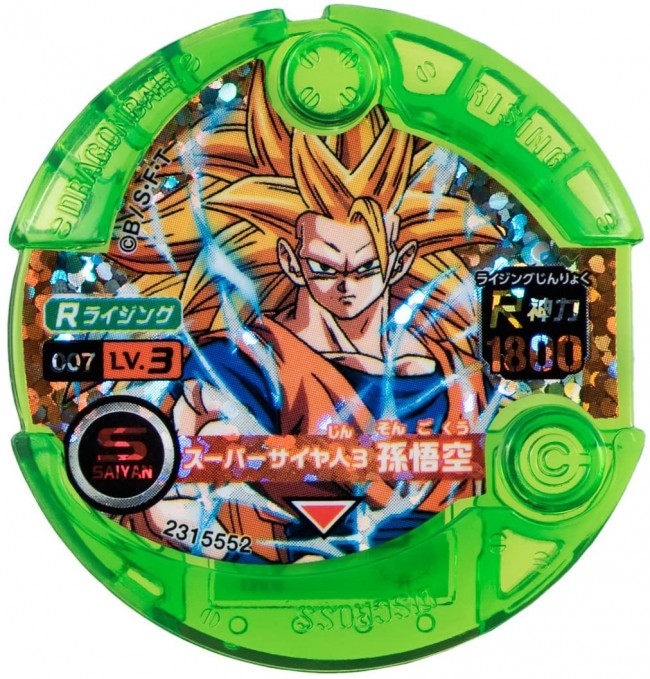 ドラゴンボール超から、スカウターモチーフのアイテム、ライジングスカウターと完全連動で楽しめる、「ライジングディスクロスセット01 悟空と仲間たち」が登場!注目のラインアップは、ライジングディスクロス4枚、バトルディスクロス1枚。ライジングディスクロス4枚をライジングスカウターで連続読み込みさせると、スーパーサイヤ人3孫悟空の音声が発動。