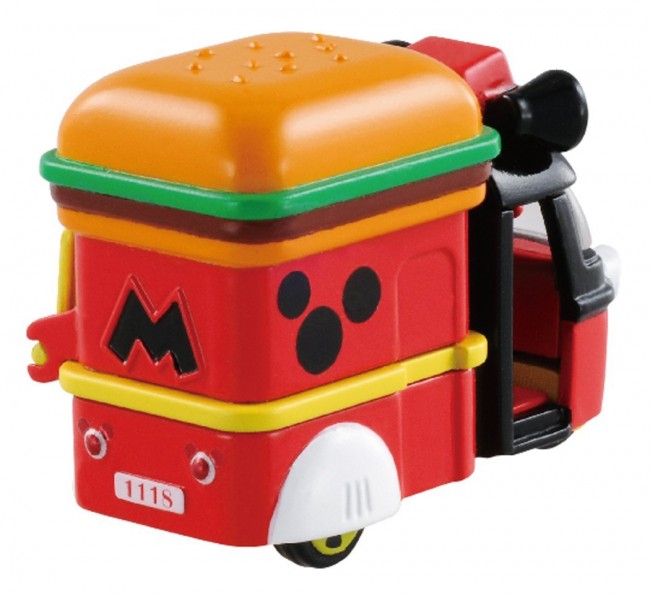 "ディズニーモータースに三輪の可愛い新車が登場! みんな大好き、ヘルシーバーガーのショップワゴンです。
