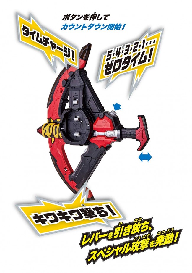 仮面ライダーゲイツの2モード変形メイン武器をなりきり商品化。「ゆみモード」と「おのモード」の2モードに変形、ボタンを押すとカウントダウン後スペシャル攻撃サウンドが発動。