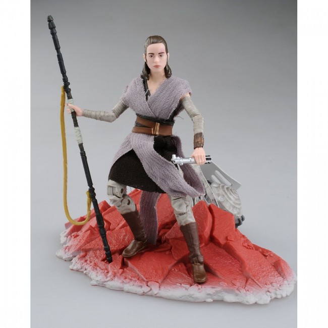 全長約15㎝の「DXブラックシリーズ 6インチフィギュア」から「スター・ウォーズ/最後のジェダイ」の主人公レイを商品化!DX版仕様となっており、2種のライトセーバー、スタッフ、専用台座が付属します。