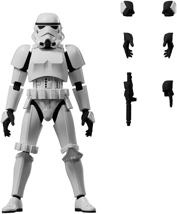 誰しもが1度は耳にしたことがあるSF映画『スター・ウォーズ エピソードV 帝国の逆襲』より、「ダース・ベイダー」、「ストームトルーパー」がプラモデルキットになって新登場! 本体、ハンドパーツ、台座のほかにも作中で使用される武器「ライトセーバー」や「ブラスター」が付属。 エフェクト付きのライトセーバーを使用すれば、躍動感のあるポージングもお楽しみいただけます。 接着剤・工具・塗装不要! キャラクターカード付きです。 【ストームトルーパー】 ■部品数:89ヶ ■武器:ブラスター ■完成サイズ:140mm