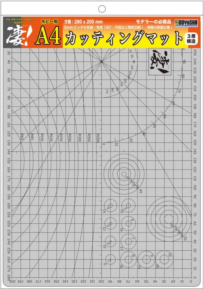 【サイズ】本体:300×220mm 【素材】PVC 1枚あるだけで作業効率アップ「A4カッティングマット」が凄!シリーズに登場! 作業台の保護はもちろん、10mm角のグリッド線付きで精密なカットのサポートに。 方眼:280×200mmに加え、角度を示す線やカーブ線など、カットの目安にお役立ち! プラモデル制作、DIYなど、幅広いジャンルで活躍間違いなし! 明暗の両面使用!! 表と裏で異なるデザイン!!