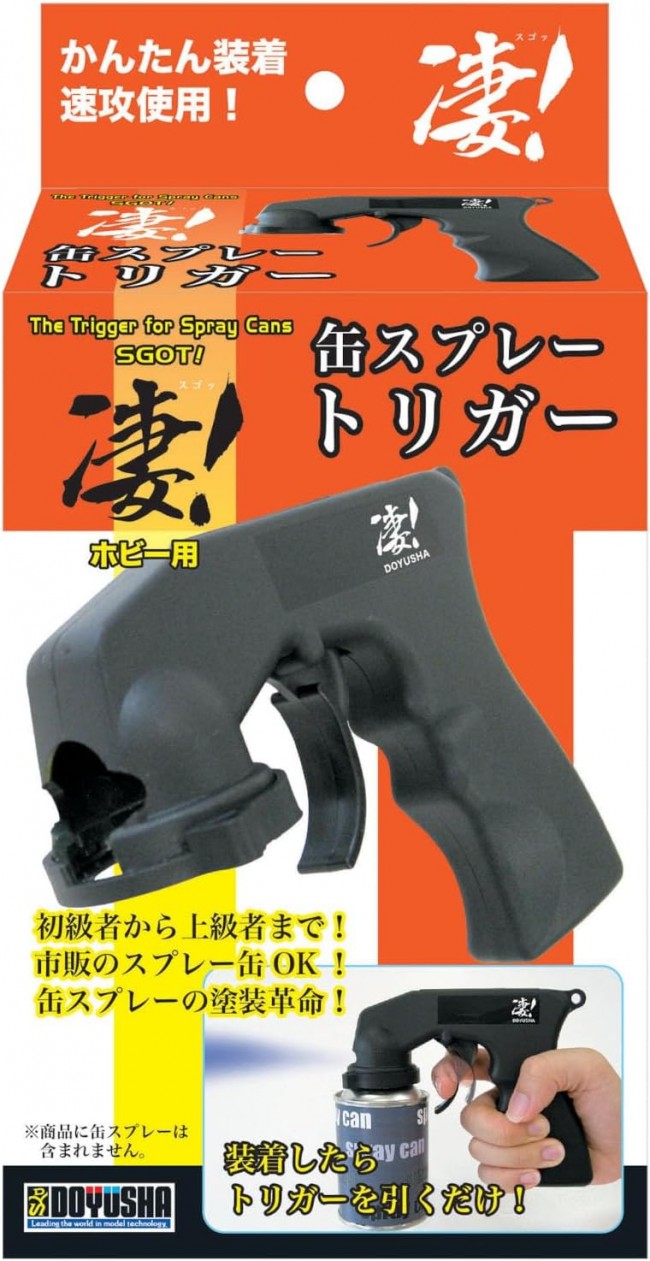 シンプルなデザインで簡単に着脱できる「缶スプレートリガー」が新登場! たったこれだけで、市販の缶スプレーがワンタンクアップ! 装着後にトリガーを引くだけで、手を汚さずに塗装作業ができる。 調色無しの塗装だけでなく、広い塗装面にも最適。 安定した缶スプレー塗装を可能にするアイテムです。 本体サイズ:140×112mm ※缶形状によって装着できない場合があります。 使用方法 1.吹き出し口の向きに注意して真上から装着します。 2.カチッとはめる。 ※トリガーには触れないでください。 3.固定リングを回す。 ※吹き出し口の向きを確認して固定。