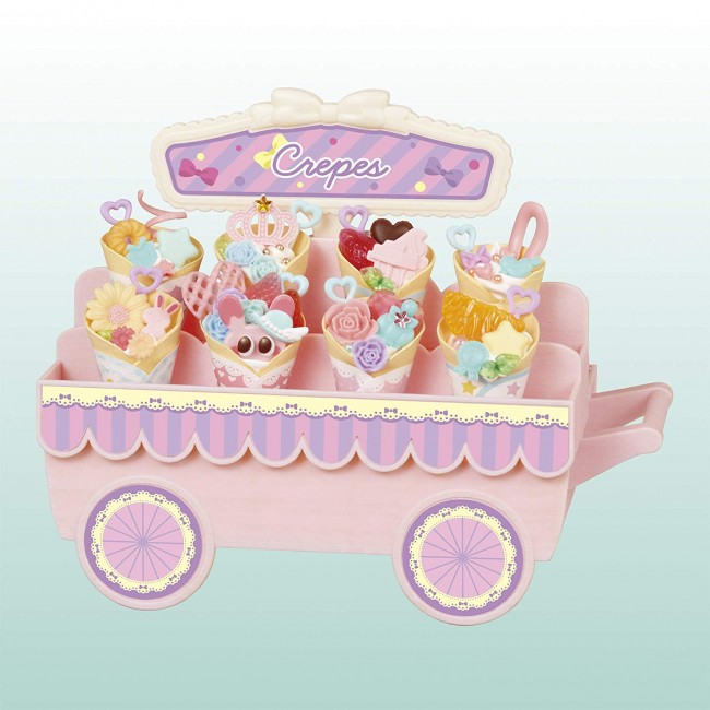 完成したクレープはワゴンにディスプレイしたり、付属のカラーストラップをつけることでアクセサリーになります。