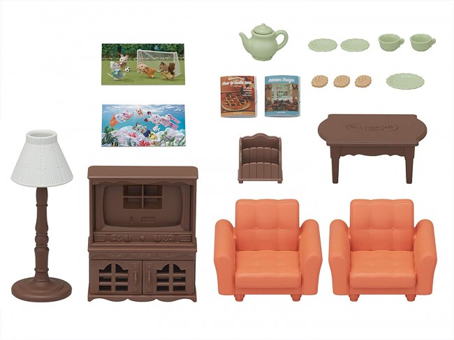 テレビを見る、紅茶を飲むなど、このセットだけでリビングルームでの楽しい遊びが出来ます。