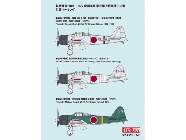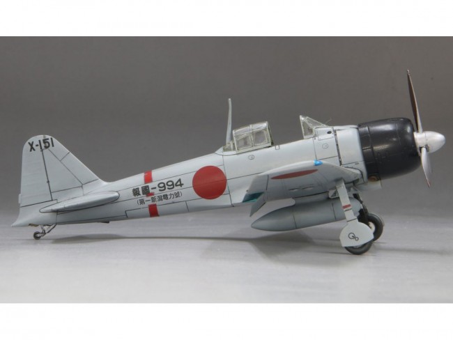 零戦三二型は、エンジンをそれまでの「栄一二型」から2速過給機付きの「栄二一型」へと換装。 これによりカウリング形状が一新され、最大速度・上昇力ともに大幅に向上しました。 さらに、運動性を向上すべく主翼端を角形に50㎝切り詰めた新しい翼平面形が特徴的となります。 この変更によって機体のシルエットは大きく変化し、実戦投入直後には連合軍から“新型機”と誤認されるほどの異彩を放っていました。 本製品では、胴体・翼・エンジン・プロペラをグレー、カウリング・脚部をブラック、機体内部は黄緑と3色に色分け成形。 マーキングはガダルカナル/ニューギニアにて活躍し撃墜破30機を数えるエース『伊藤清』の乗機と、空母瑞鶴飛行隊所属機ほか、『ヒゲの羽切』と呼ばれたエース『羽切松雄』の機体のデカールを封入します。 シリーズ名 1/72 スケール 日本陸海軍 航空機